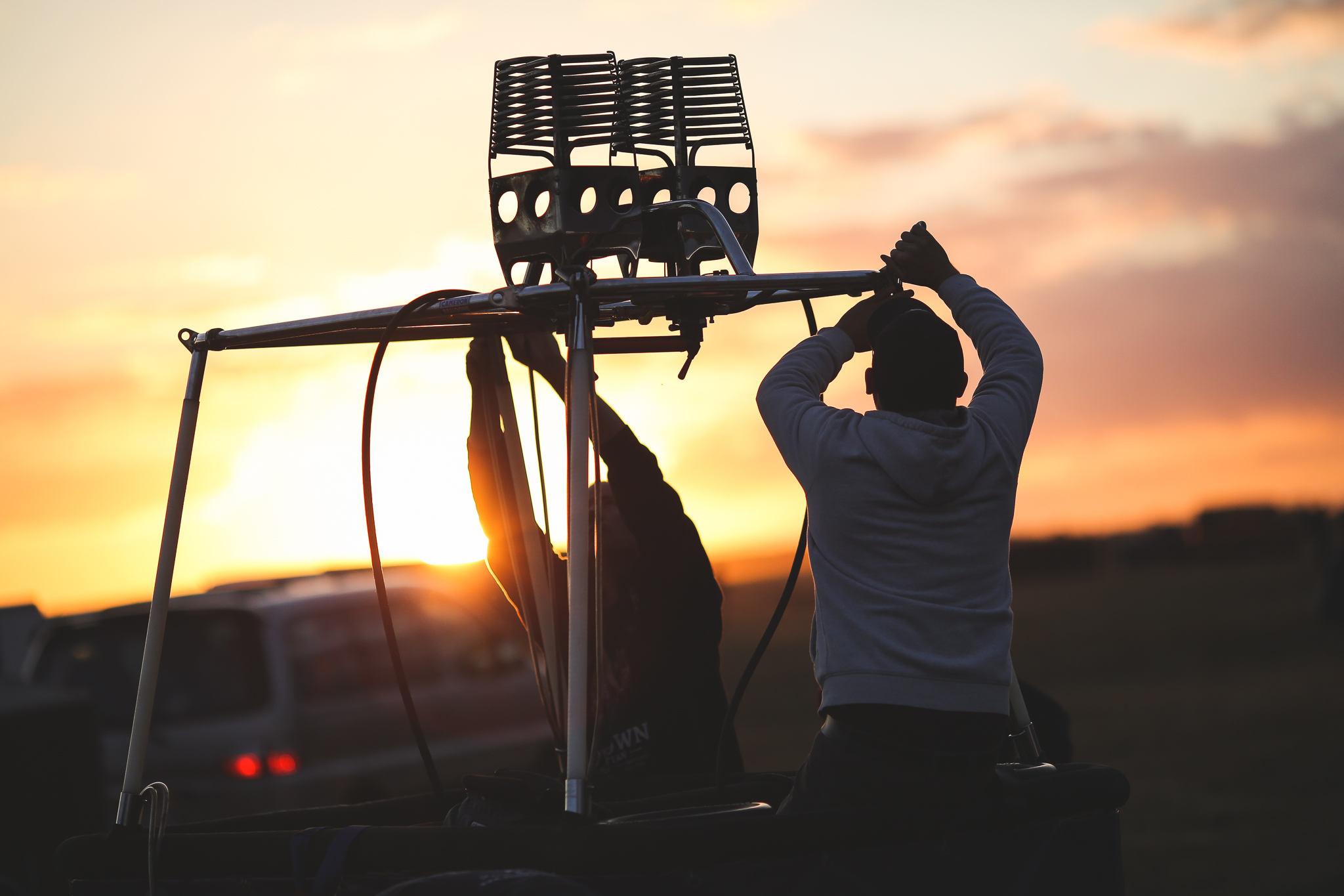 Un lever de soleil magnifique ce matin à 6h30, les pilotes étaient au rendez-vous pour gonfler leurs ballons dans des conditions optimales. Nous avons profité de ce moment pour passer quelques minutes avec Cédric et son équipe de lanceurs, chargés d’assurer la sécurité sur l’aire d’envol. Une très bonne ambiance règne entre eux, tous aussi passionnés par les ballons !